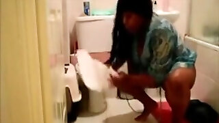 Curvy Dark-hued Creampied In The Bathroom. Hot Amateur Slut