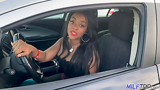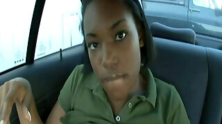 Ebony chick left behind money at home and makes a deal with a taxi driver
