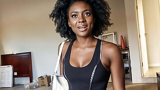 Shy black teen deep throats a big cock and gets fucked hard in the wrong casting!