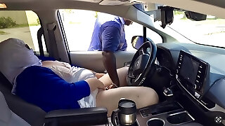 Yam-sized arse booty bbw ssbbw white girl milf in mini dress finger fucking in public and stranger car blowjob close up