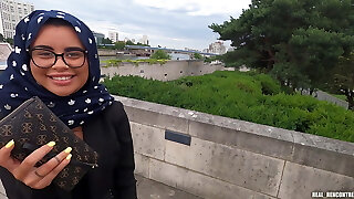 A pretty Hijab Arab girl gets banged in anal and in public by Two blacks to go to Marbella!