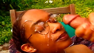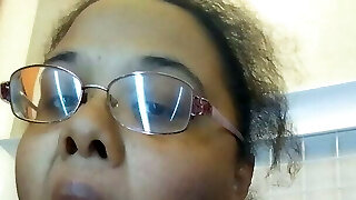 Ugly black doll in glasses gives a legendary deepthroat blowjob