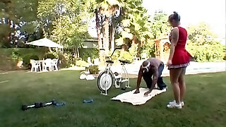 Ebony Cheerleader In Her Mini-skirt Gives A Blowjob