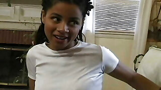 Slim and small titted ebony enjoys cum all over her beautiful young face