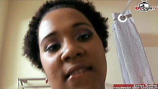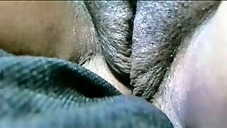 Chubby African preggo girl tugging on webcam