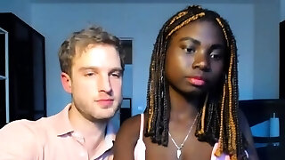 Hot slender ebony teenager babe takes white cock in both holes live