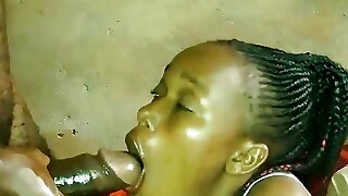 African babe having fun with long white chisel